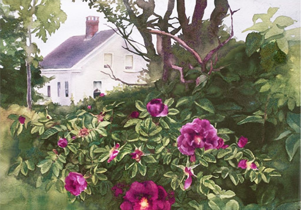Rugosa Roses, watercolor, 20" width x 14" length.