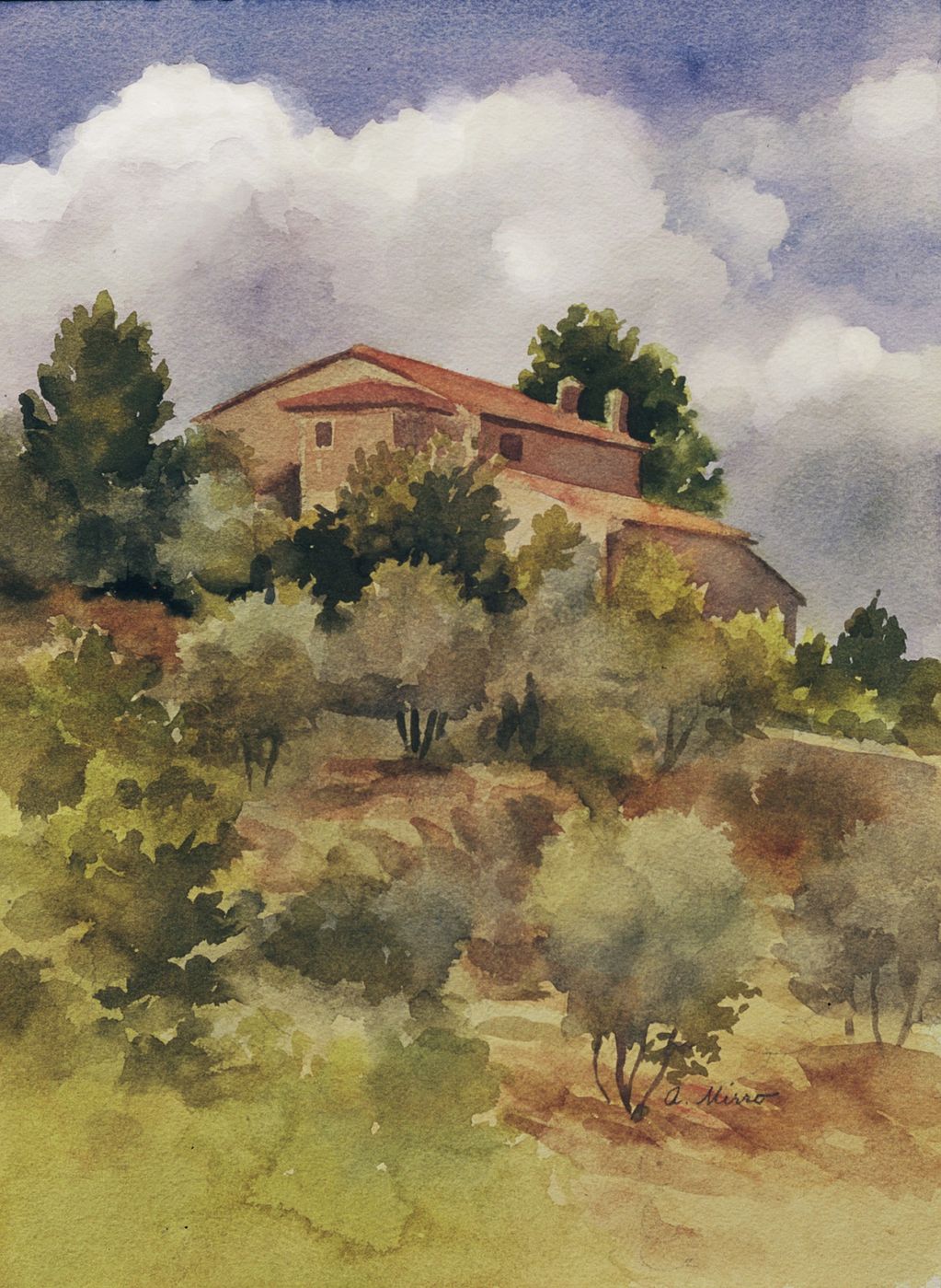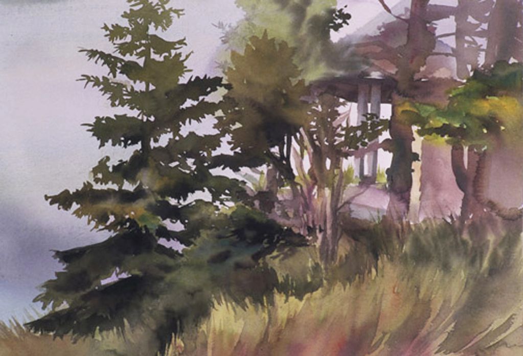 Deaidre's Cottage, watercolor, 20" width x 14" length.